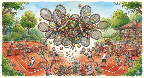 Unter der Leitung von Marieke und Jenny machten von Montag bis Donnerstag insgesamt 24 Kids die Plätze unsicher. Neben Fitness- und Koordinationsübungen wurde dabei vor allem auf eine Sache besonderes Augenmerk gelegt: der Lust am Tennisspielen.
